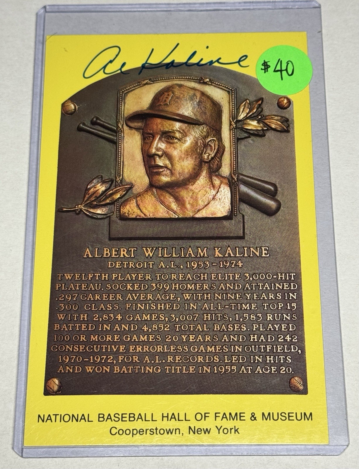 Al Kaline HOF Postcard Signed Blue Ink SGC AU47335