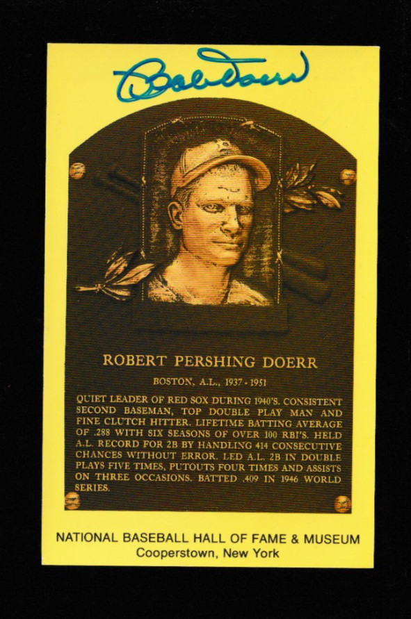 Autographed BOB BOBBY DOERR Hall of Fame Gold Plaque Post Card Authentic EX+