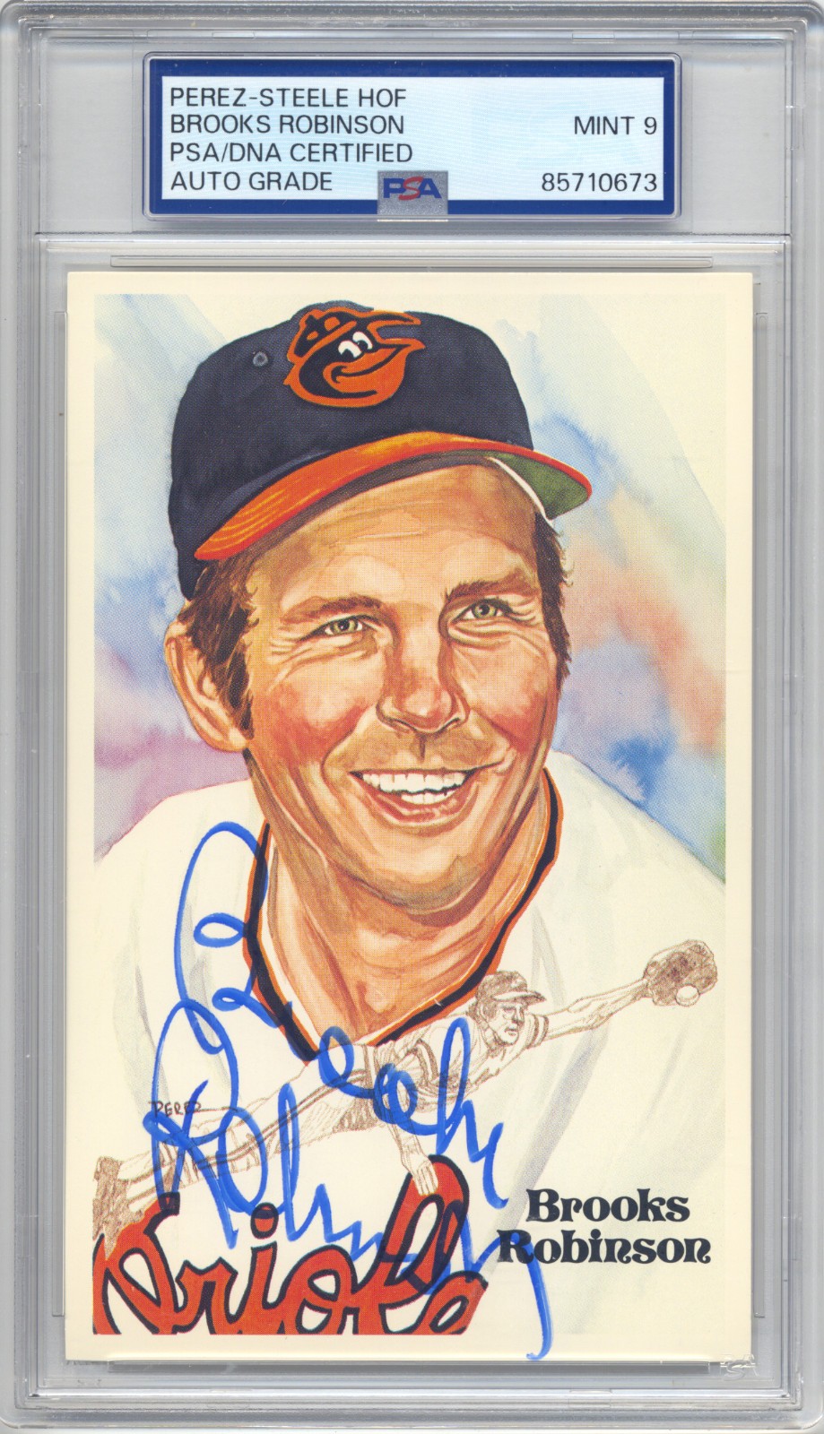 MINT 9 BROOKS ROBINSON AUTOGRAPHED PEREZ STEELE POST CARD PSA/DNA SLABBED