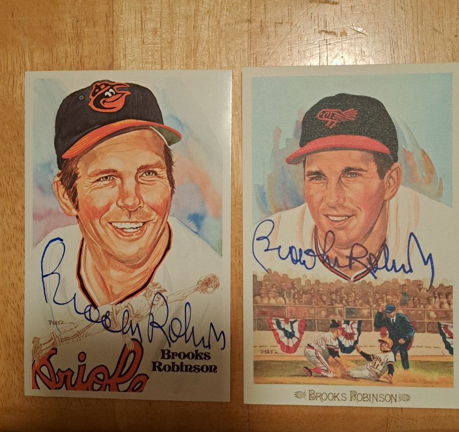 BROOKS ROBINSON SIGNED PEREZ STEELE POSTCARDS LOT OF 2