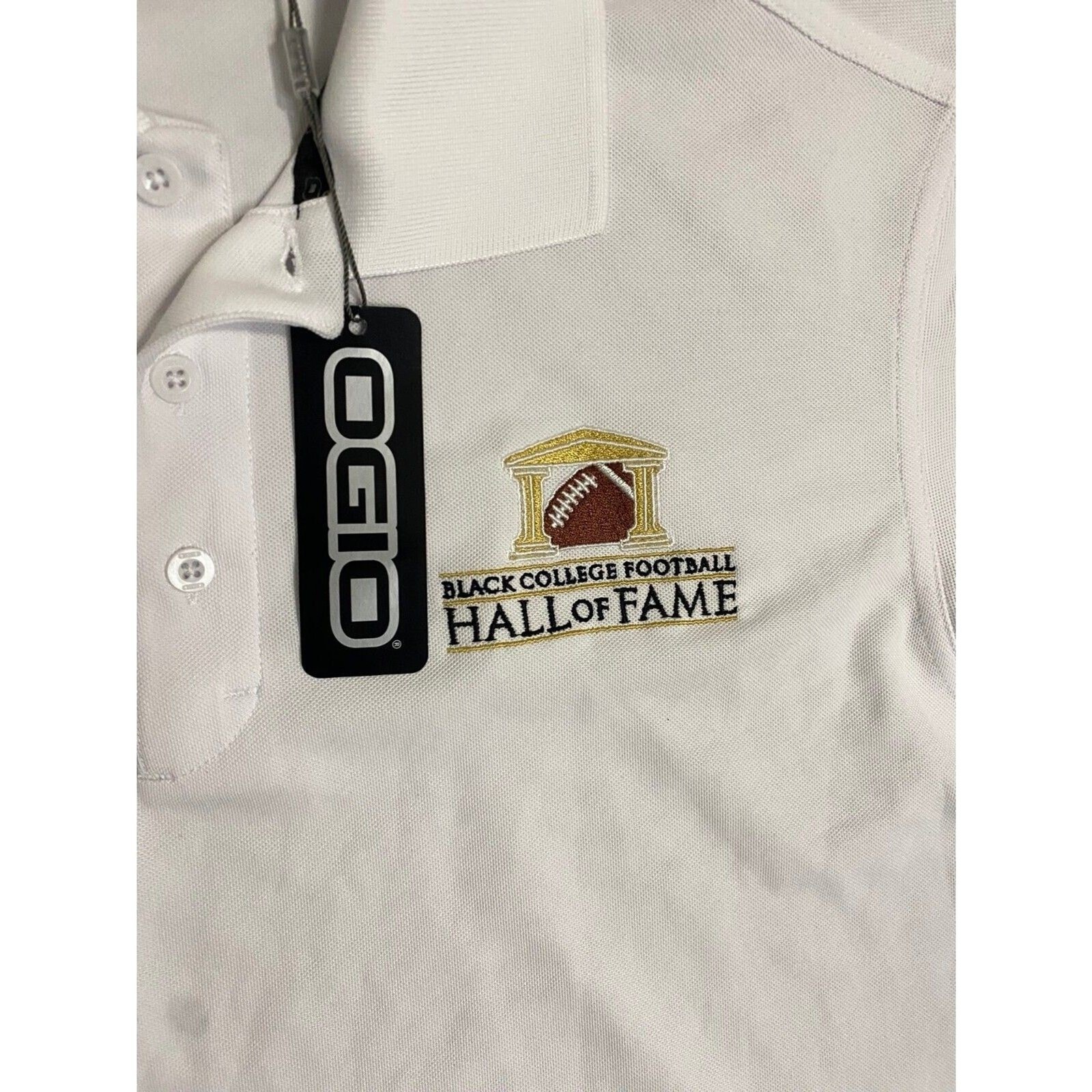 Black College Football Hall of Fame Short Sleeve Polo Shirt Medium White NWT