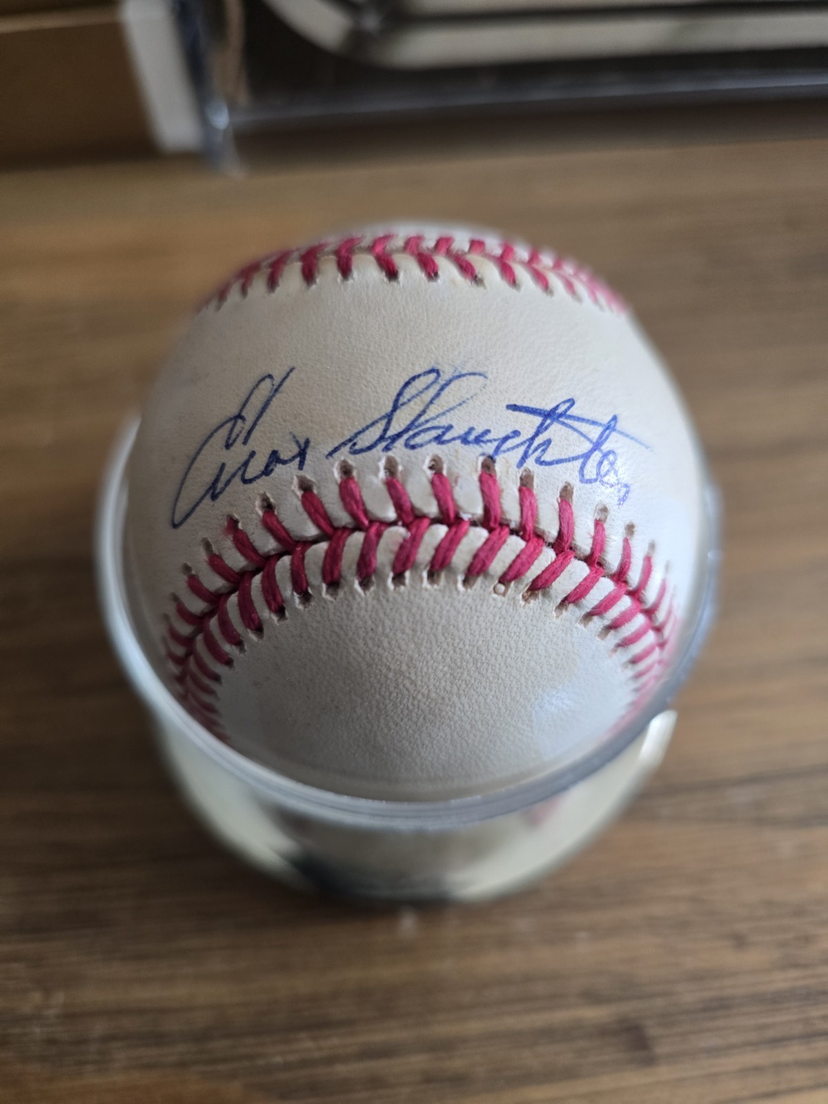 Enos Slaughter Signed Ball Baseball HOF Cardinals Yankees Braves A\'s