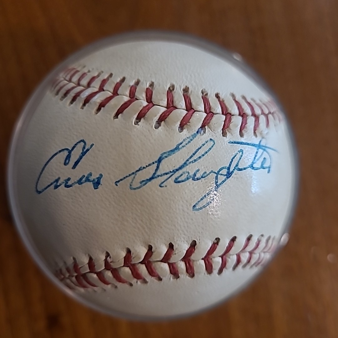 Enos Slaughter Signed Ball Baseball HOF Cardinals Yankees Braves A\'s