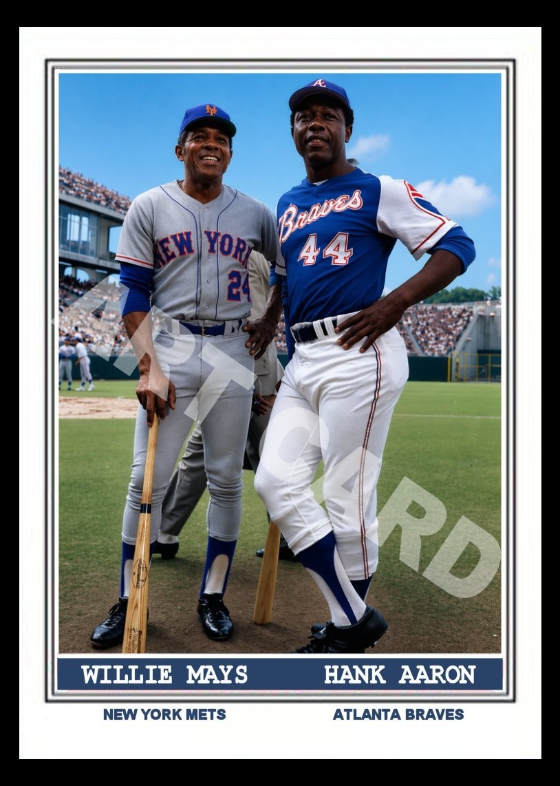 Hank Aaron Atlanta Braves Willie Mays New York Mets Art Baseball Card