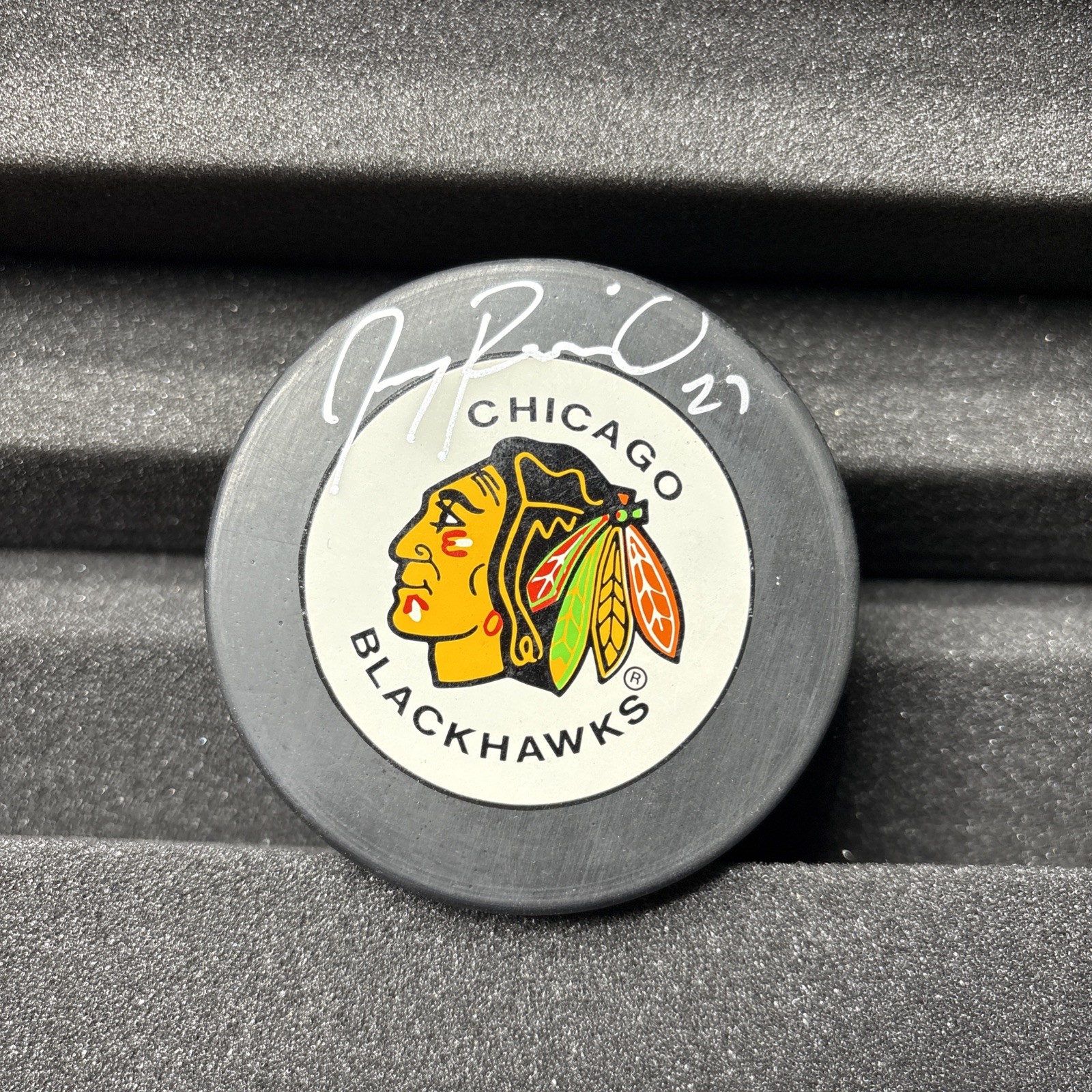 Jeremy Roenick HOF 2024 Autographed Chicago Blackhawks Logo Hockey Puck - BAS