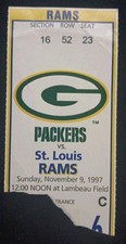 1997 Packers Rams Brett Favre 2 TD LeRoy Butler Sack Isaac Bruce Football Ticket