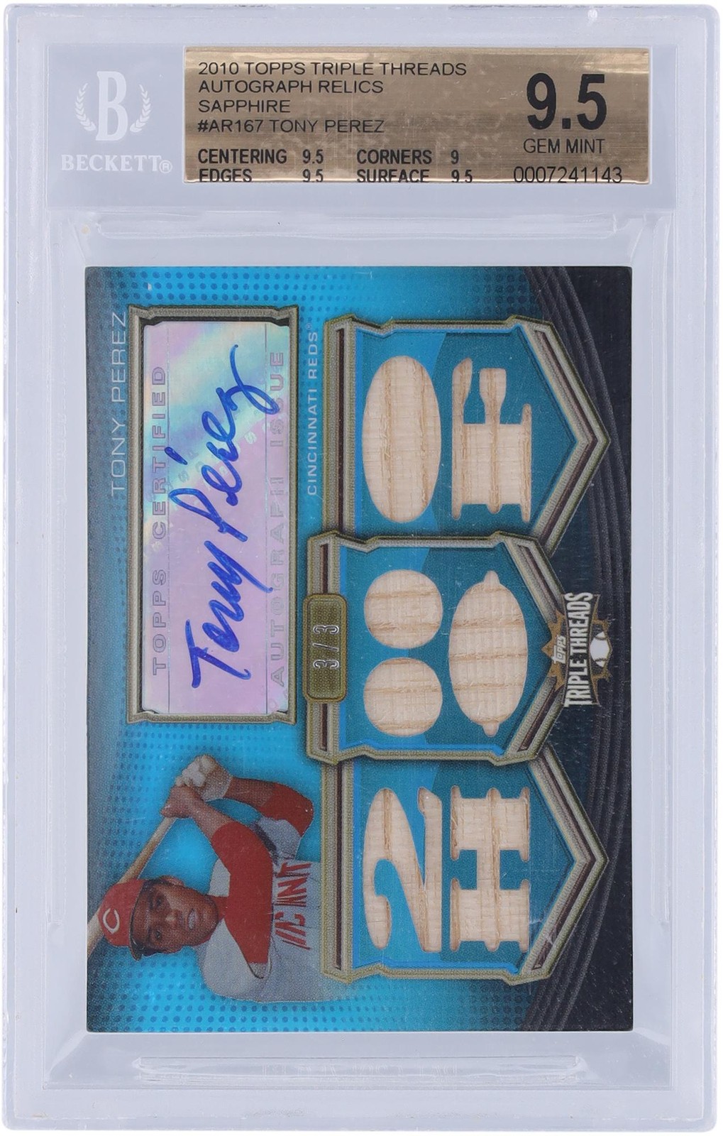 Tony Perez Reds Signed 2010 Topps Triple Threads #TTAR-167 #3/3 BGS 9.5/10 Card
