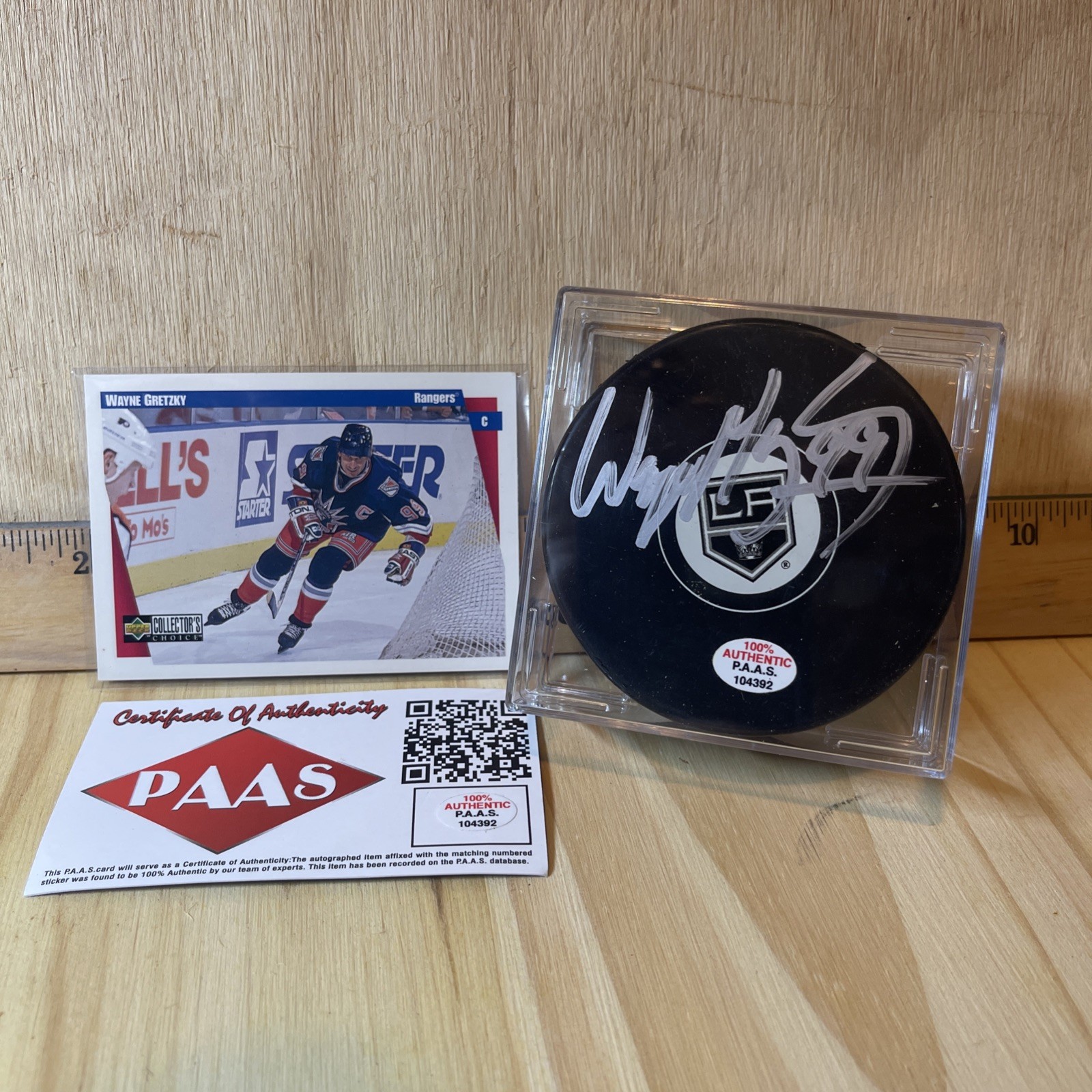 Wayne Gretzky Signed Hockey Puck Cert PAAS COA #104392 Free Case Upper Deck Card